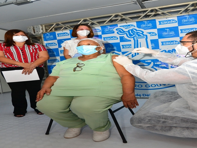 A vacinação de imunização da Covid-19 foi iniciada na cidade de Delmiro Gouveia, na tarde desta quinta-feira (21). A primeira imunizada foi a servidora Gilda, que é servidora do Hospital. A cerimônia contou com a presença da prefeita Ziane Costa (MDB), da secretária de Saúde, Geonice Peixoto e vereadores.