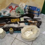 Geraldo Feitosa, ‘Chicão’, 45 anos – Mandado de Busca e apreensão – Encontrado com três armas de fogo, duas espingardas calibre 12, uma espingarda, material explosivo, munições, material de obras, uma quantidade de mais de R$ 8 mil em dinheiro, suspeito pela polícia de participação de roubos a banco na região e também pelo invasão na adutora do sertão.