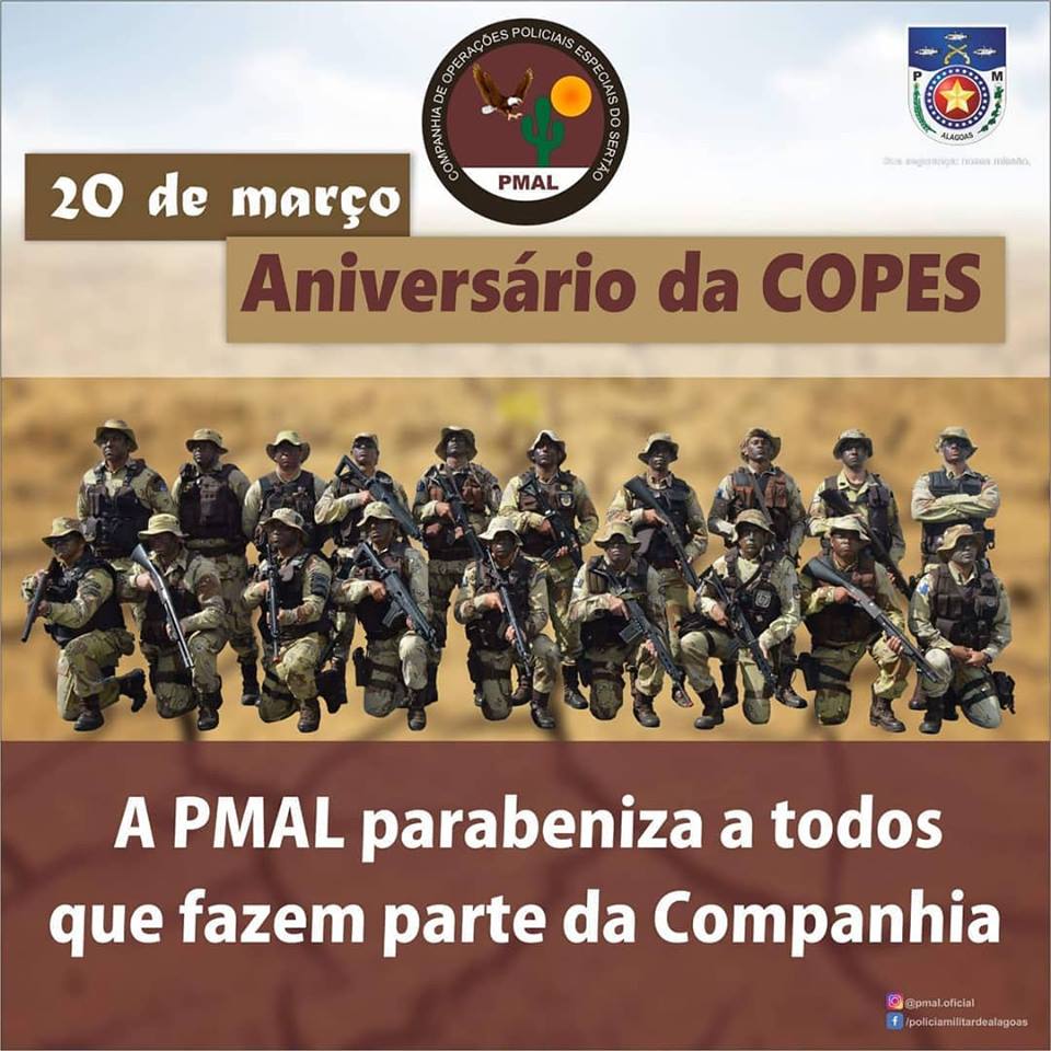 A Companhia de Operações Policiais Especiais do Sertão (COPES—Caatinga), completou nesta terça-feira, 20, 4 anos de existência. A polícia especializada é considerada a menina dos olhos da Secretaria de Segurança Pública do Estado de Alagoas (SSP/AL).